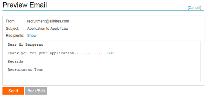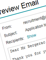 Automatically acknowledge receipt of applications and then keep in touch easily, using customisable email templates.