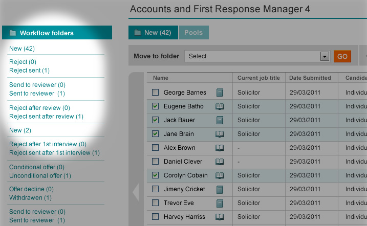 The CMS is where you can review all applications submitted. It shows key information at the touch of a button and allows you to filter, take notes, report and communicate with candidates easily. Our easy-to-use tools also help you to be proactive, with 'talent watch' tools as standard in all systems.